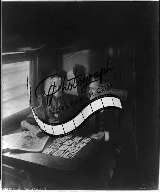 Elderly Man,Women,Magazine,Playing Cards,c1905,Railroad Passenger Car,RR,Train