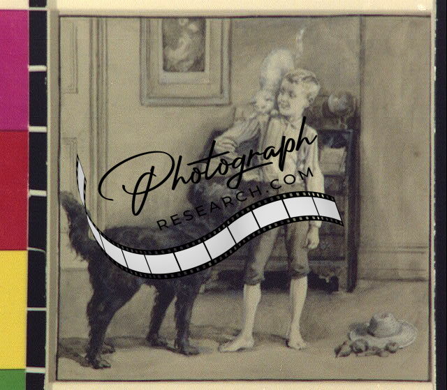 I see a boy,1888?,Alice Barber Stephens,Pet,Animal,Children,Cat,Dog