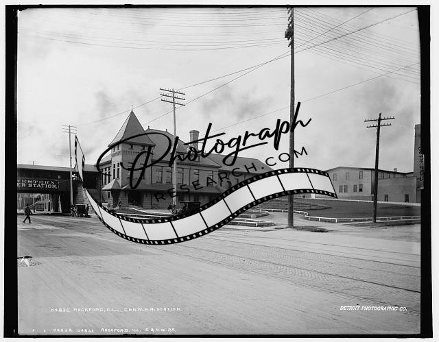 C & NWRR,Chicago,North Western Railway station,tracks,Rockford,Illinois,IL,1880