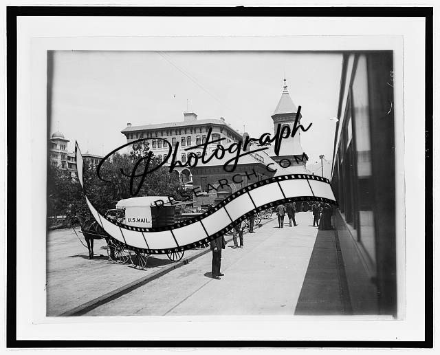 Railway station,carts,wagons,postal service,carriages,Pasadena,California,CA,