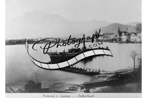 Lucerne,Switzerland,Waterfront,Rowboat,Steamboat,Mountains,City,c1880
