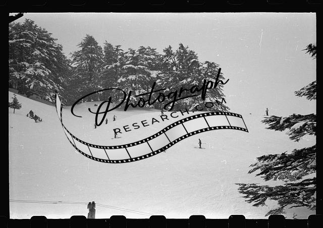 Title: [Cedars of Lebanon in snow and skiers]