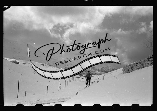 Title from photographer's logbook: Matson Registers, v. 2, [1940-1946], misidentifies scene as 'Skier rounding a corner at high speed.'
