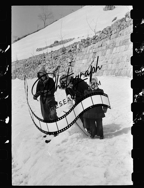 Cedars. Photographic party stops for a cold snowy lunch,Lebanon,March 1946,5