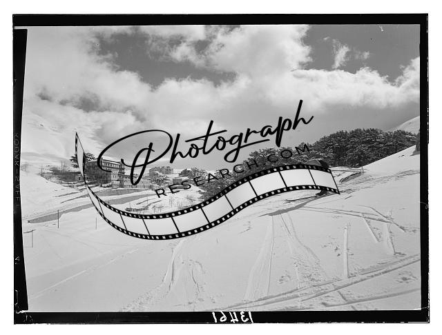 Cedars,snowy slopes,cedar grove showing the 'Cedar Hotel',Lebanon,1946