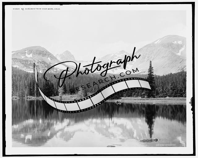 Mount Audubon,mountains,lakes,water bodies,trees,reflections,Ward,Colorado,c1901
