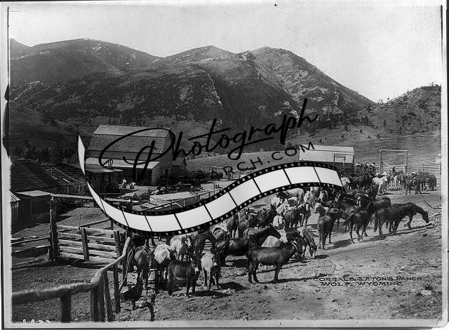 Corrals,Eaton's Ranch,Wolf,Wyoming,WY,c1910,Horses,Donkeys,Mountain