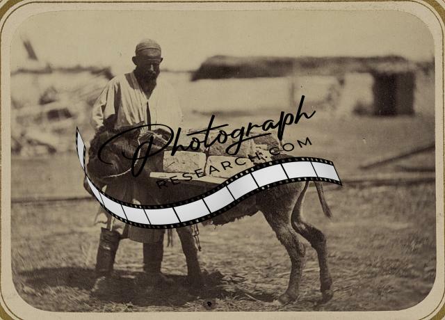 Central Asia,bazaar,cane vendor,donkey,bricks,c1865