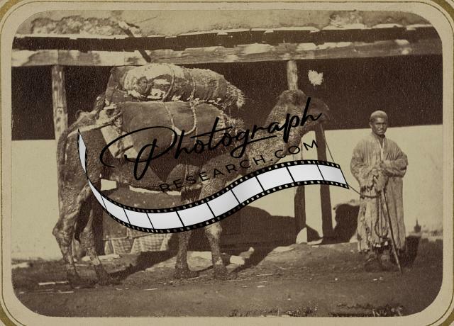 Central Asia,vendor,bazaar,commerce,camel,sacks,1865