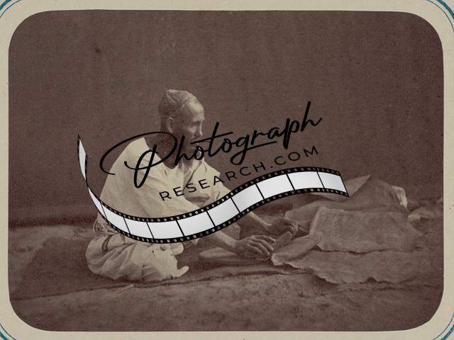 Summary: Photograph shows a man cleaning seeds to produce shagreen leather.