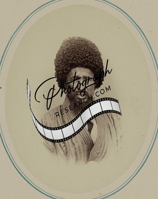 Summary: Photograph shows a portrait of a Khivan man, head-and-shoulders, wearing a fur hat.