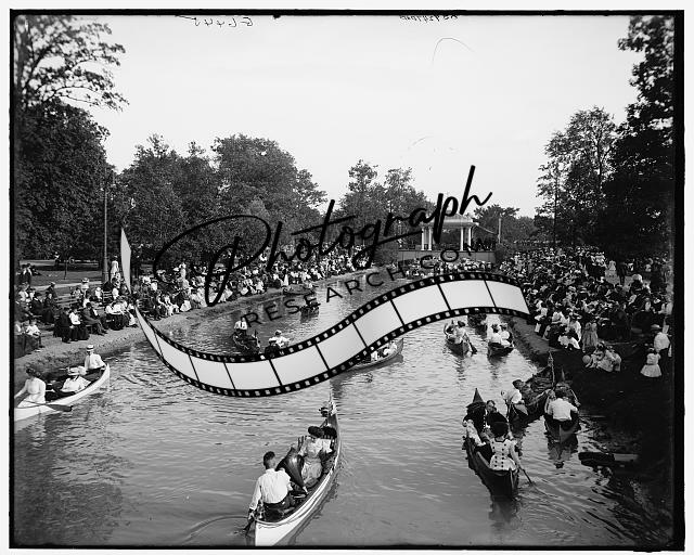 Grand canal,canoes,crowds,boats,water,Belle Isle Park,Detroit,Michigan,MI,1900