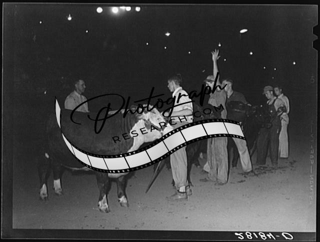 Title: Start of calf-scramble, in which twelve boys try to catch six calves. Central Iowa Fair, Marshalltown, Iowa