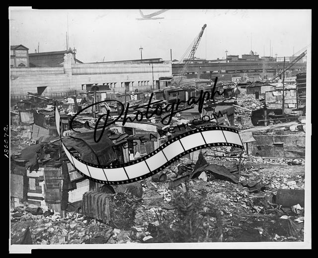 Shanty town,lower Manhattan,NY,1932,Squatters,crane