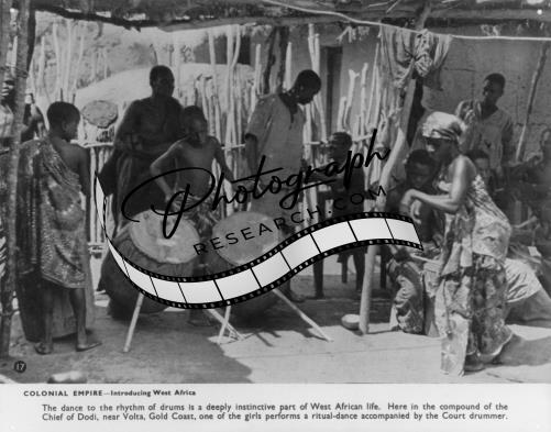 Girl,ritual dance,Chief of Dodi,Court Drummer,Volta,Gold Coast,West Africa,1948