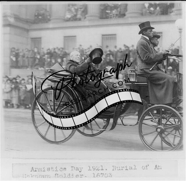 Woodrow Wilson,waving top hat,open carriage,Armistice Day,Unknown Soldier burial