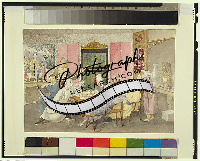 Musicians accompany two men eating,attended by three servants,1860-1900,photo