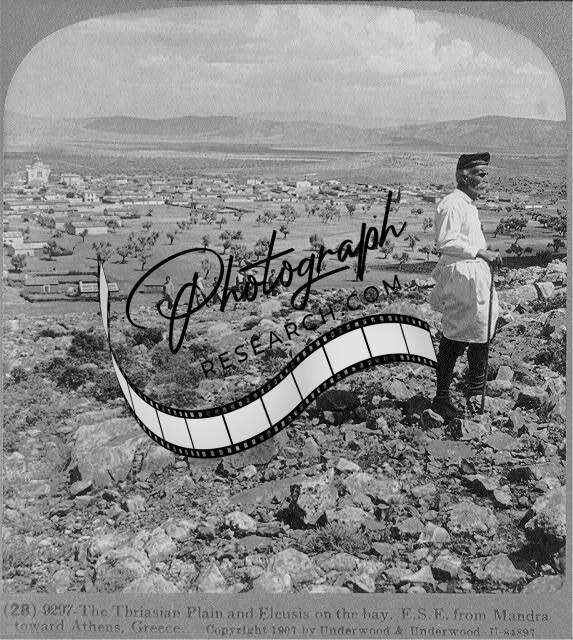 Thriasian Plain,Eleusis on the Bay,Mandra,Athens,Greece,Man,1907,Walking Stick