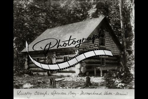 Lucky Camp,Spencer Bay,Moosehead Lake,Maine,ME,log cabin,exterior,man,c1884