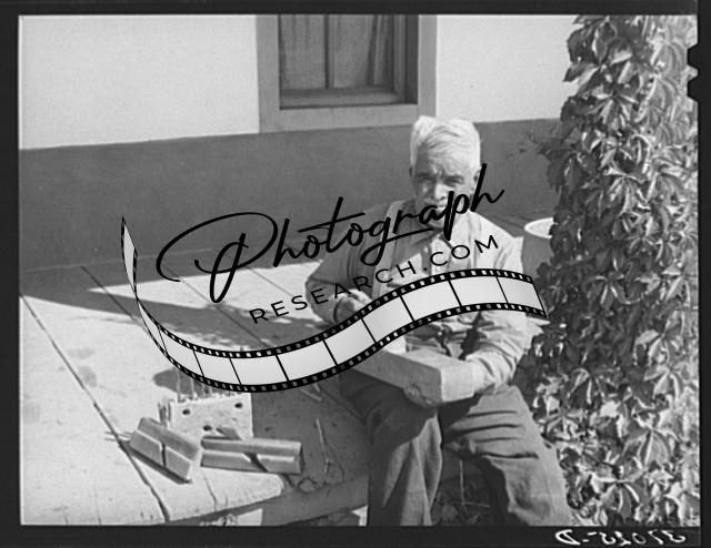 Title: Spanish-American farmer coming out of fruit storage cellar. Chamisal, New Mexico