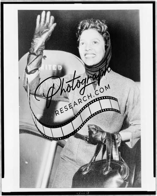 Dorothy Dandridge waves as she disembarks from airplane in Los Angeles,1955