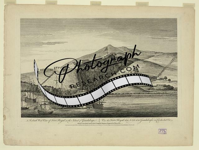 A South West view of Fort Royal in the island of Guadaloupe,Ships,Mountain