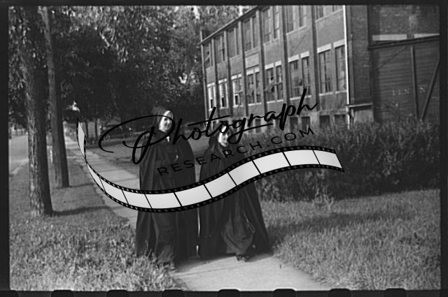 Nuns walking along a street,Burlington,Vermont,VT,Chittenden County,1941,FSA,1
