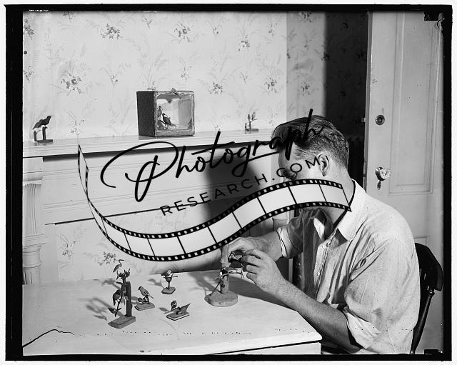 Carving birds,hobby,Ellis Miller,craftsmen,woodworking,Washington DC,1937