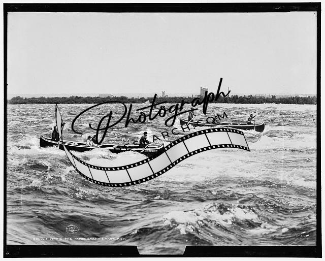 Shooting rapids,canoes,Sault Stephen Marie,Michigan,Detroit Publishing Co,c1906