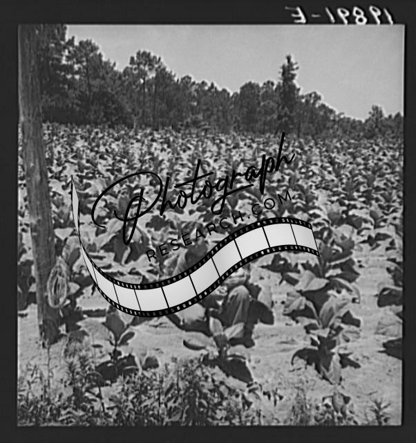 Title: Sharecropper with wife and child in their tobacco field. Note that the tobacco grows up to the front porch. Near Chapel Hill, North Carolina