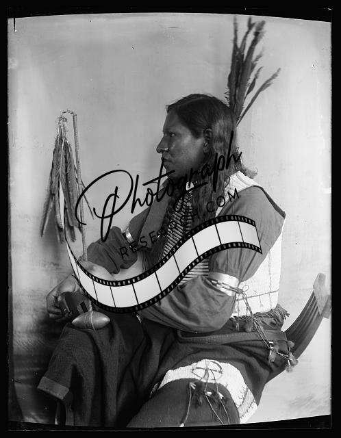 Summary: Charging Thunder, half-length portrait, turned right, wearing a feathered headdress.