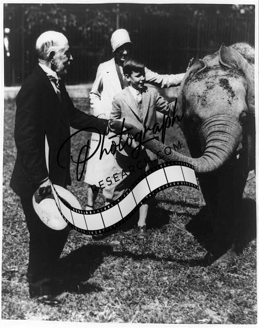 William Temple Hornaday holding trunk,elephant,woman,boy,petting,zoologist,1920