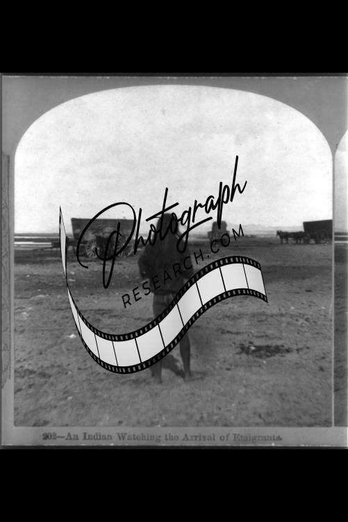 An Indian Watching the Arrival of Emigrants,Immigration,1877,Indian,Wagons,Horse