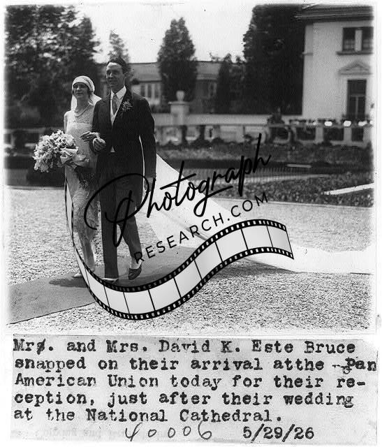 Mr,Mrs David K Este Bruce after their wedding,veils,National Cahtedral,1926