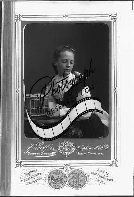 Young woman,with bird on shoulder,1877,bird cage,dress