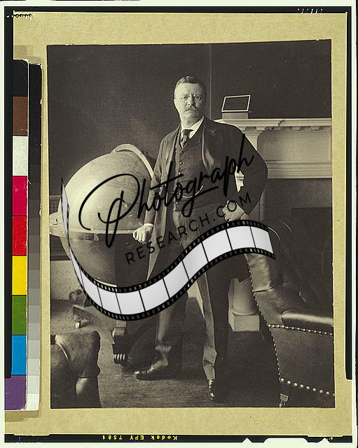 Theodore Roosevelt,beside large globe,President of United States,Explorer,c1903