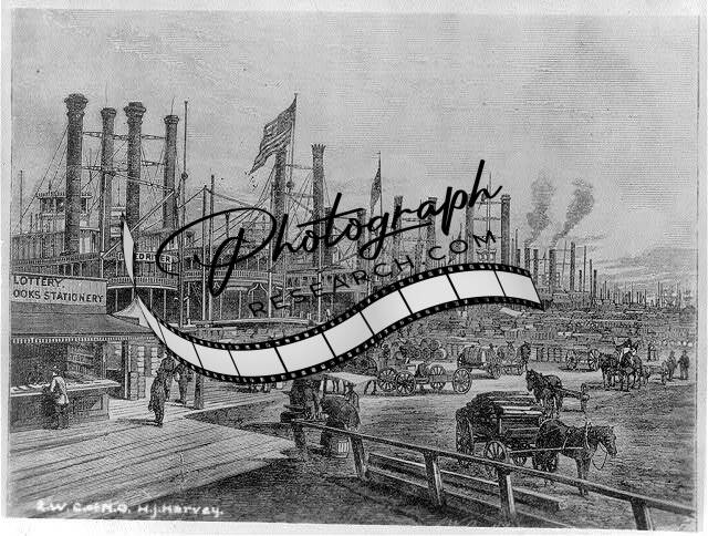 Steamboats drawn up at New Orleans' waterfront,LA,Flag