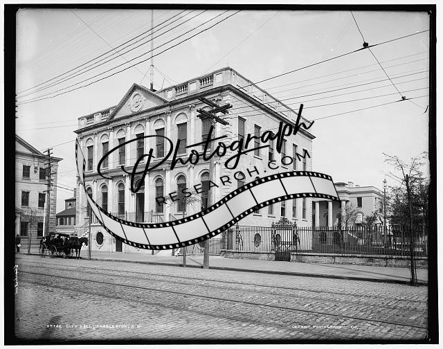 City Hall,buildings,railroad tracks,streets,Charleston,South Carolina,SC,1890