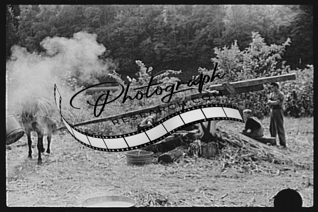 Pressing juice from sugarcane to make sorghum molasses,Racine,West Virginia,1