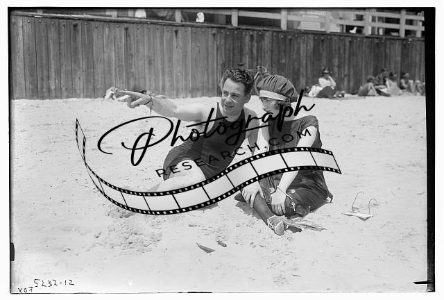 Fox,men,women,swimmers,beach,sand,bathing suits,portraits,Bain News Service