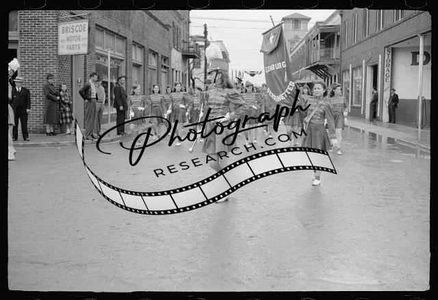 High school band,Charro Days parade,Brownsville,Texas,TX,Arthur Rothstein,FSA,1