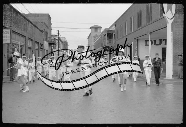 High school band,Charro Days parade,Brownsville,Texas,TX,Arthur Rothstein,FSA,1