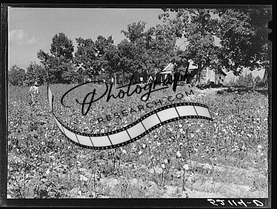 Title: Negro sharecropper, Will Cole and his son picking cotton. The owner is Mrs. Rigsby, a white woman. About five miles below Chapel Hill, going south on Highway 15, toward Bynum in Chatham County, North Carolina. Address: Route 3, Chapel Hill