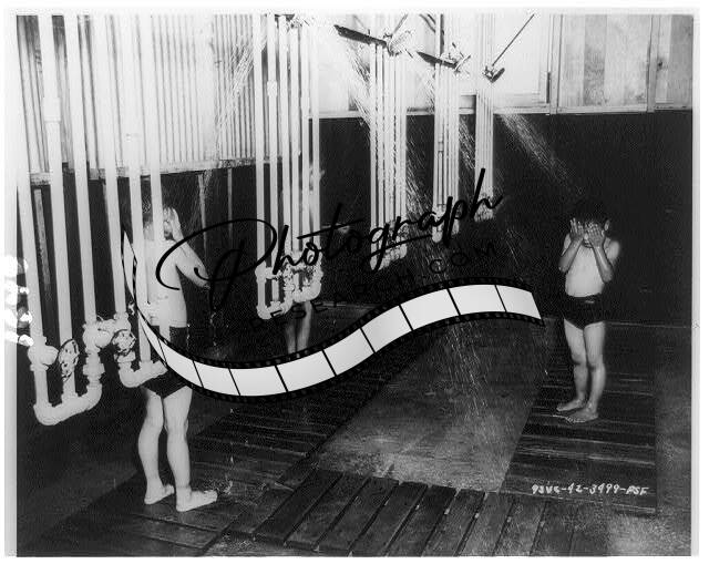Japanese boys,Shower Room,Fresno,California,Assembly Center,1942,WWII,World War