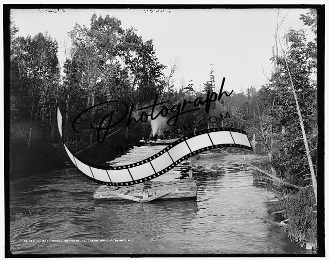 Lumber barge,inland route,industry,logs,Cheboygan-Petoskey,Michigan,MI,1900