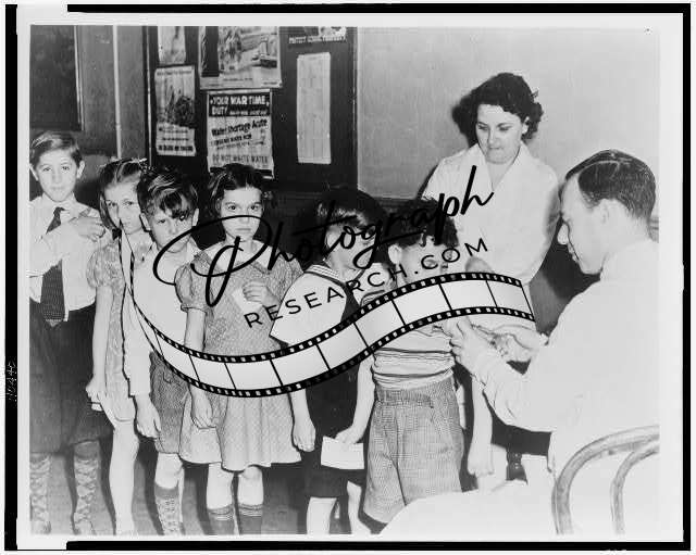 Health,NYC,school children waiting for immunization shots,Child Health Station