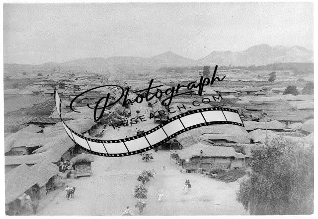 Great East,West Street,looking east,Seoul,Korea,1896,thatched roof,people