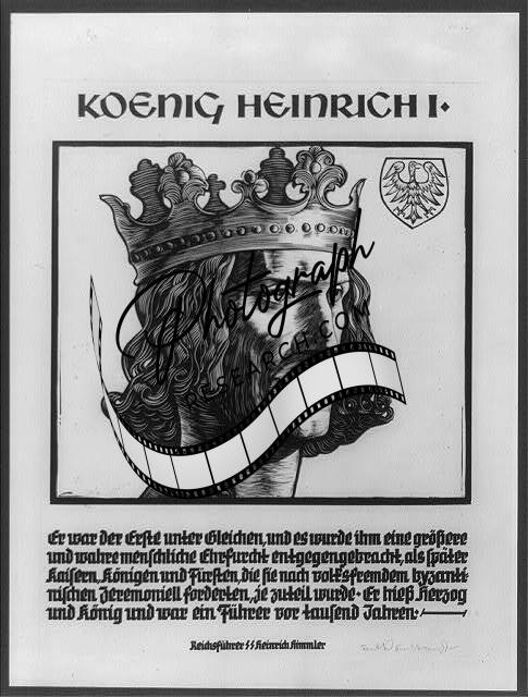 König Heinrich I, Portrait of Henry I; text praising this leader of a thousand years ago, i.e. celebration of the "Thousand Year Reich".