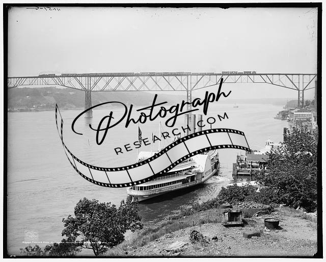 Passing over,under Poughkeepsie bridge,railroads,Hudson River,New York,NY,c1906
