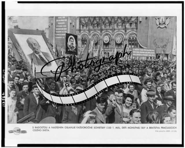 Mayday crowds, Lenin and Stalin in Bratislava 1950's